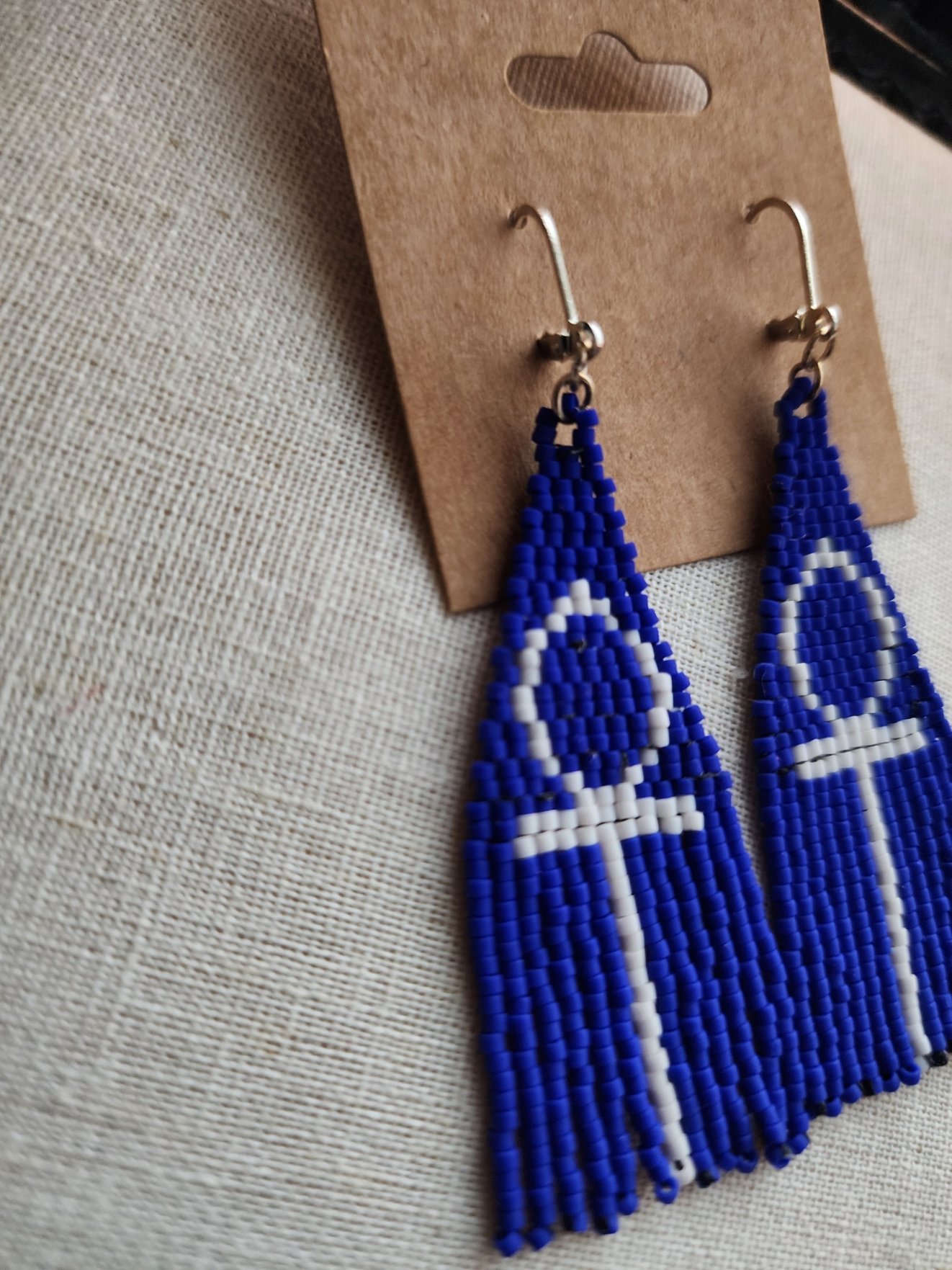 Handbeaded, Fringe Earrings with the Ankh (life) symbol. Sterling Silver findings.